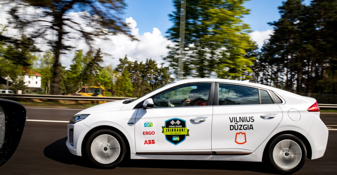 Pernai žinomas lenktynininkas Vaidotas Žala ir „Ignitis“ generalinis direktorius Darius Montvila su „Hyundai Kona Electric“ įveikė atstumą tarp Vilniaus ir Palangos per 3,28 val. be jokio sustojimo.