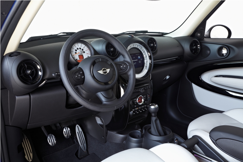 Pagal specialų užsakymą sukurtas interjero dizainas ir jo elementai – masyvus, horizontaliai išdėliotas prietaisų skydelis su naujais apvadais oro ventiliacijai, didelis apskritas centrinis spidometras, taip pat su naujais apvadais ir dekoratyviniais vidiniais žiedais ir kt. – sukuria tipinio MINI automobilio įspūdį.