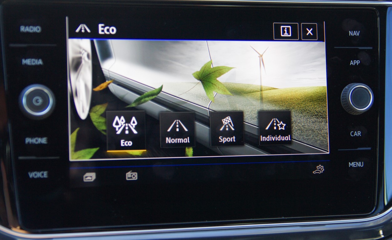 Vairuotojo vieta, kaip ir kituose VW koncerno modeliuose, pragalvota iki smulkmenų ir „puikiai pažįstama“. Visi mygtukai ir svirtelės ten, kur jie turi būti, į vairuotoją kiek pasuktas lietimui jautrus centrinio panelio ekranas ir jo reguliavimo rankenėlės, suprantamas ir nesunkiai pasiekiamas. Vokiečiai konservatyvus, todėl persėdus iš vieno Volkswagen automobilio į kitą, visada jautiesi „kaip namie“, nes žinai, kur kas ir kokia tvarka „sudėta“, o aukšta sėdėsena užtikrina gera matomumą visomis kryptimis.