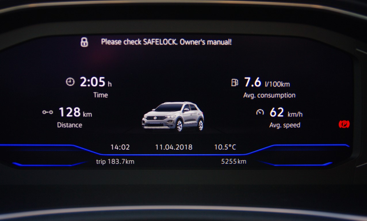 Nors, kadangi tai – tik vienas iš dviejų aiškesnių „trūkumų“, išlindusių per kelias bandymų dienas, tad jo galima ir „nepastebėti“. Antras „trūkumas“ – juostas stebinčios sistemos veikimas. Kol ji veikė, juostas stebintys davikliai automobilį vis grąžindavo į kelio vidurį, tačiau kai aš ignoravau eilinį raginimą paimti vairą, sistema, užuot supurčiusi mane ar pradėjusi stabdyti automobilį, tiesiog išsijungė… Manyčiau, ne pats geriausias sprendimas, ypač įvertinus tai, kad, kai kuriais atvejais, žmogus vairą gali paleisti ne eksperimentuodamas, o dėl rimtų priežasčių. Šiuo klausimu VW galėtų padirbėti, nes kituose koncerno modeliuose sistemos į situaciją reaguoja adekvačiau. Kaip vėliau paaiškino VW atstovai, “emergency assist” sistemą, kuri pasirūpina, kad vairuotojui nelaikant vairo, automobilis tvarkingai sustoja dešinėje kelio pusėje, bazinėje sąrangoje turi tik T-Roc Sport” versija, kartu su “line assist” ir “blind spot rear view direct” sistemomis. Kitais atvejais ją reikia užsakinėti papildomai.