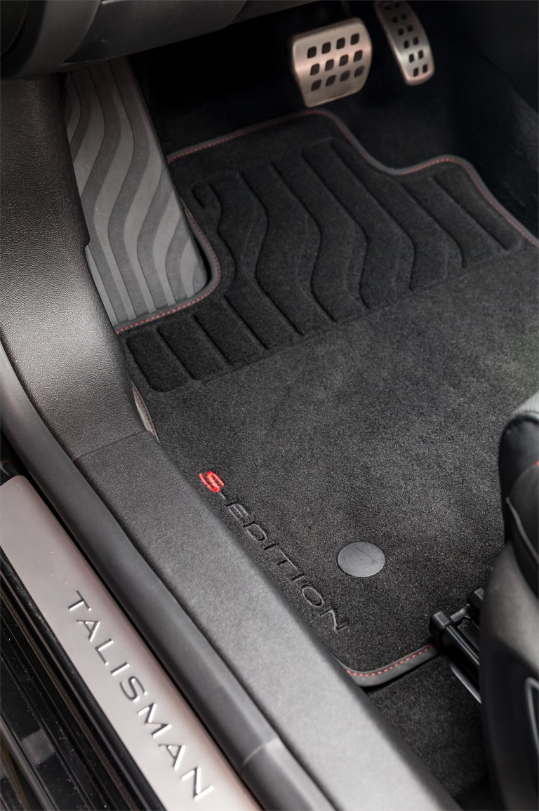 „Talisman S-Edition“ interjeras subtilus, nors ir dekoruotas aiškiai sportiškais elementais, pavyzdžiui, juodos odos su raudonais akcentais apmušalai ir prietaisų skydelis (taip pat priderinta vairo, pavarų svirties silfono ir durų intarpų odos apdaila), pilki ir raudoni kilimėliai išsiuvinėti „S-Edition“ motyvu, aliumininiai pedalų dangteliai ir kiti aliumininiai apdailos elementai. Juodas stogo dangos apmušalas suteikia papildomo sportinio patrauklumo. Erdvus automobilio vidus, naujoviškos technologijos ir aukštos kokybės apdaila padėjo sukurti kompetentingą „Talisman S-Edition“ reputaciją.